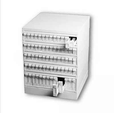 Le classement et le stockage des échantillons est l'une des plus grandes tâches en pathologie. Nous proposons différents modèles d'armoires de stockage en fonction des besoins et des préférences des utilisateurs. Les armoires sont fabriquées en fer ou en matériau ABS, en design table-top pour moins d'échantillons et un transport pratique, ou en modèle standard traditionnel pour le dépôt et le stockage d'échantillons en masse.