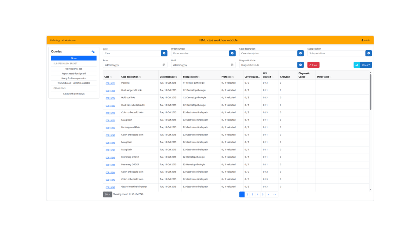 PIMS DX ist eine CE-IVD-zertifizierte Plattform, die speziell für die Anforderungen diagnostischer Pathologielabore entwickelt wurde. Sie ermöglicht eine effiziente Verwaltung und Betrachtung digitaler Pathologiebilder.